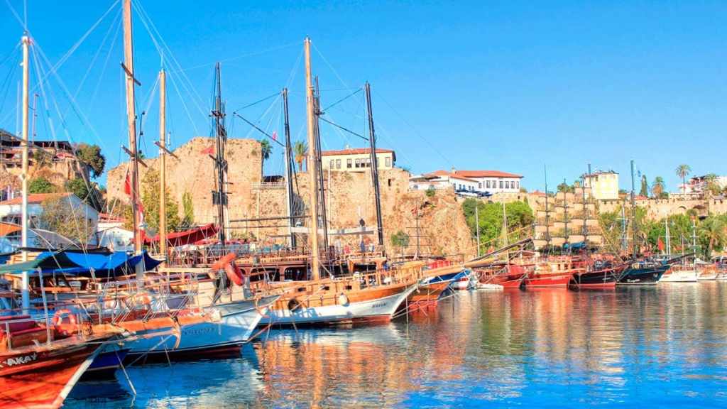 游船通常从 安塔利亚老港口(Kaleiçi Marina) 出发,沿着城市标志性的悬崖海岸线航行。
